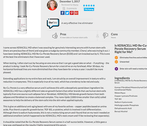 Human Stromal Cell Derived Conditioned Media, Water/Aqua, Hyaluronic Acid, Methylglucoside Phosphate, Copper Lysinate/Prolinate, Phenoxyethanol, Ethylhexyglycerin.